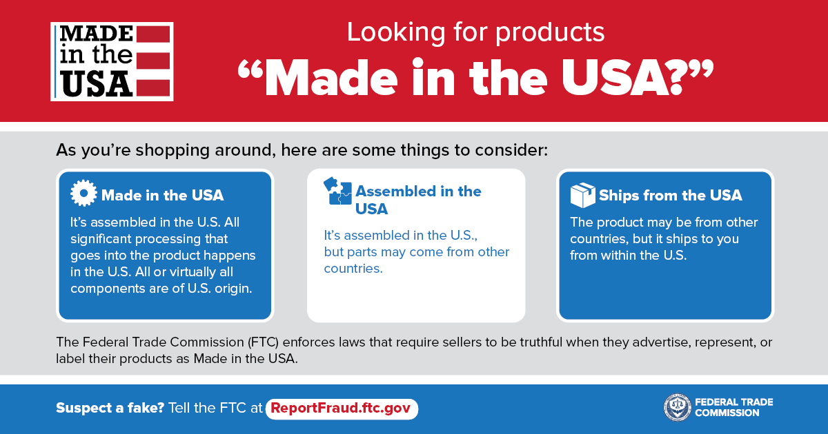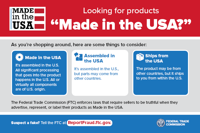Are you looking to buy products that are made in the USA? The FTC enforces laws that require sellers to be truthful when they advertise, represent, or label their products as Made in the USA.