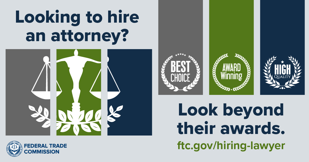 And check out ftc.gov/hiring-lawyer for more information on how to hire the right kind of lawyer and what to ask about lawyers’ fees.